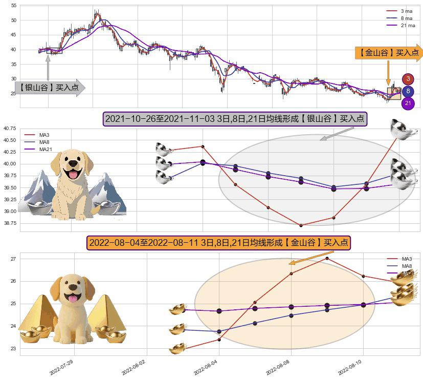 ⚄ 2022-08-05-日至2022-08-11-日显现 3日-8日-21日均线 【金山谷】买入点 其再次确认了买入信号,可靠性更强,买入