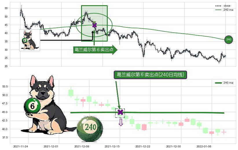⚀ 2021-12-15-日显现 葛兰威尔均线 240日均线 第⑥卖出点 走势反转见顶信号,后市看跌,卖出信号