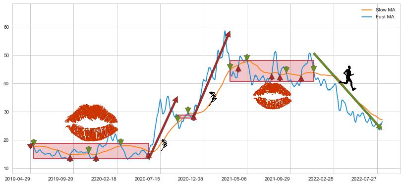 2021-12-17至2022-08-12 慢线与快线呈空头排列, 慢线与快线接触少,无缠绕