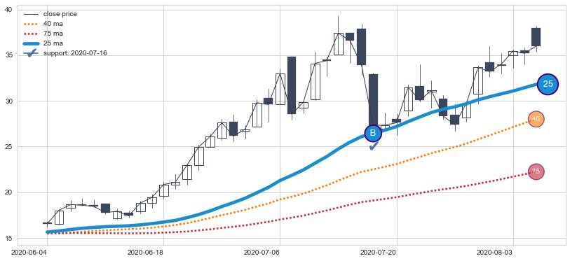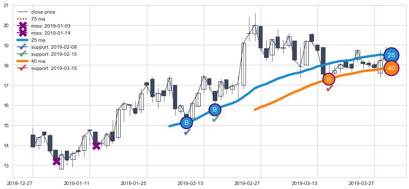 ⚃ 在破位点附近ma走势明显平稳迹象,稍后的走势中ma下垂迹象也出现,信号【可信度中等偏上】