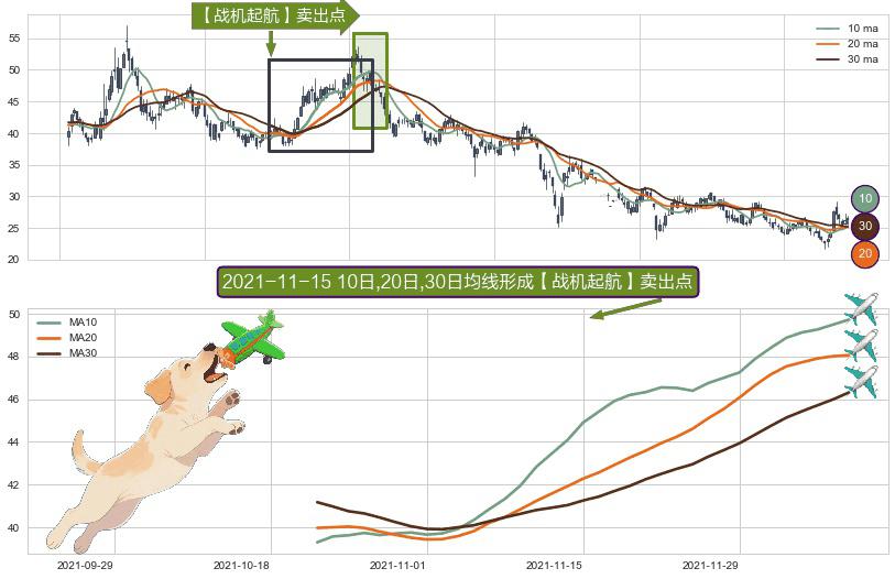 ⚀ 2021-10-21日-2021-12-08日显现 10日-20日-30日均线 【战机起航】卖出点 看空信号,后市看跌,卖出