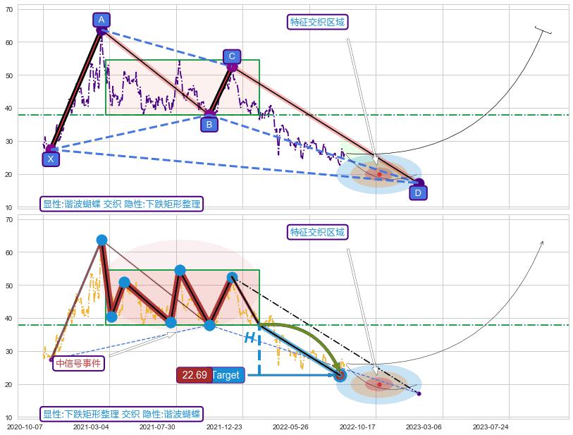 ➣ 未完成【蝴蝶】形态起点X: 2020-10-27, 已到达C点: 2021-12-01, 预测最终D点: 2023-01-13, 共545交易日