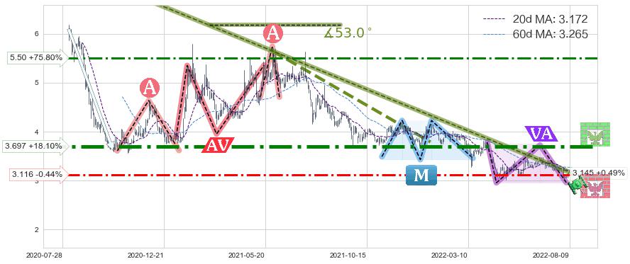 ♘ 阻力价格位3.697,可信任强度88.91%,距离最后交易2022-08-12形成的收盘价格3.130相差 +18.10%