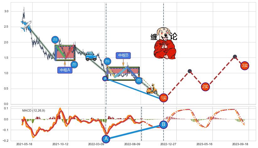 ➢ 【中枢B】:2022-03-21-2022-08-02,中枢由5笔构成,共88交易日, ZG=1.1500, ZD=0.9800