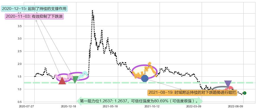 ♘ 阻力价格位1.2637,可信任强度80.69%,距离最后交易2022-08-12形成的收盘价格0.8500相差 +48.67%