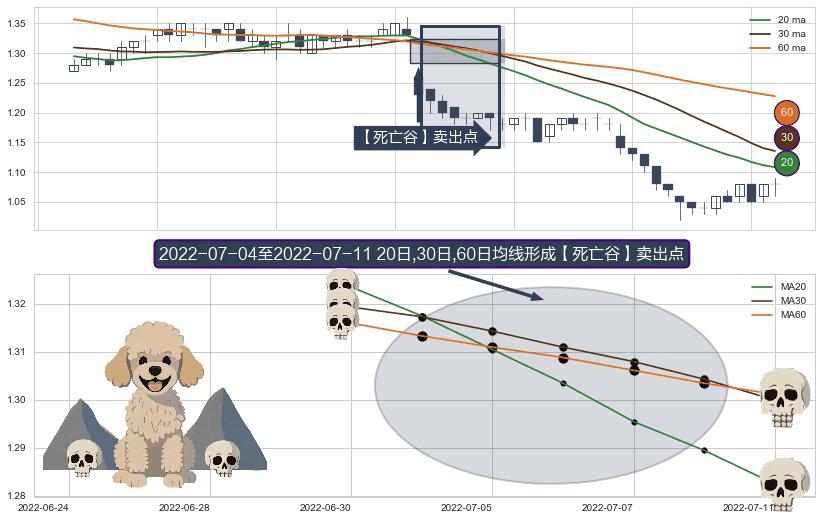 形态多维评估: ⚀ 2022-07-05-日至2022-07-11-日显现 20日-30日-60日均线 【死亡谷】卖出点 看空信号,后市看跌,卖出