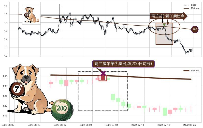 形态多维评估: ⚀ 2022-06-28-日显现 葛兰威尔均线 200日均线 第⑦卖出点 下降趋势的中继信号,后市看跌,卖出信号
