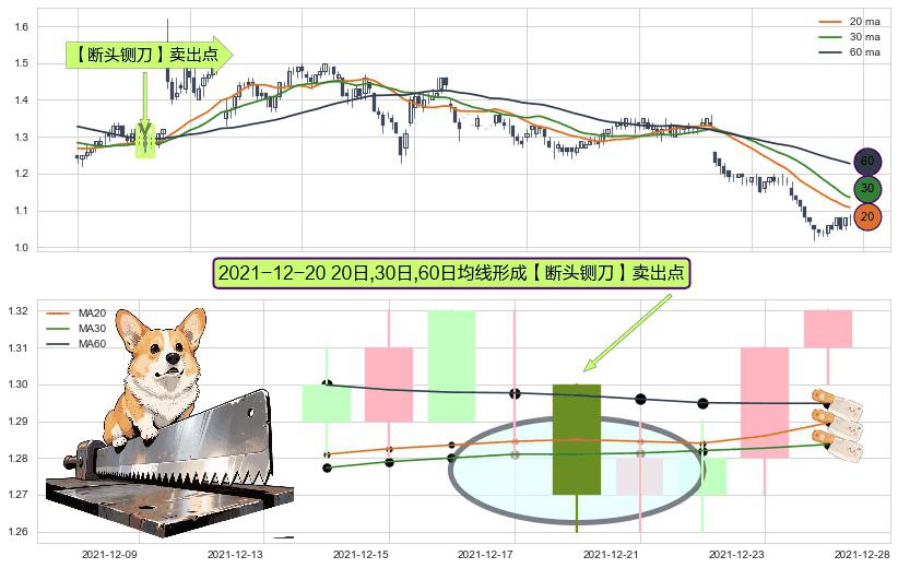 形态多维评估: ⚀ 2021-12-20日显现 20日-30日-60日均线 【断头铡刀】卖出点 看空信号,后市看跌,卖出