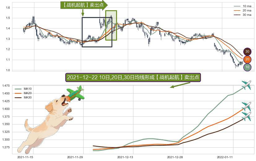 形态多维评估: ⚀ 2021-12-01日-2022-01-13日显现 10日-20日-30日均线 【战机起航】卖出点 看空信号,后市看跌,卖出