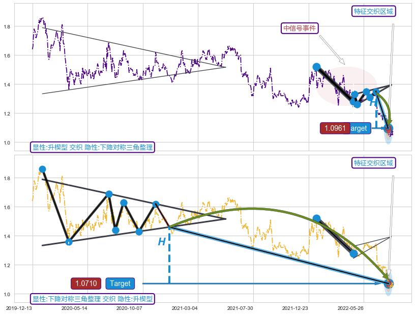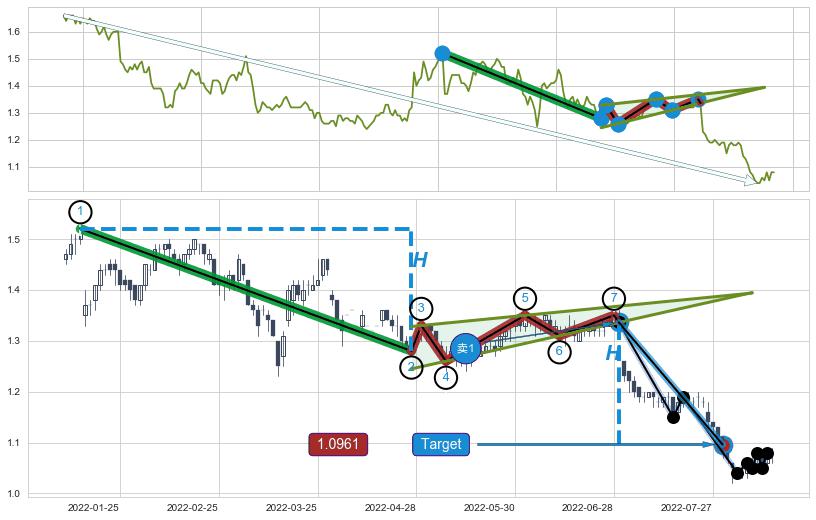 ➢ 【卖1】: 激进型 卖点→(2022-06-29: 1.3361 )形成突破升🚩楔型【整理】形态