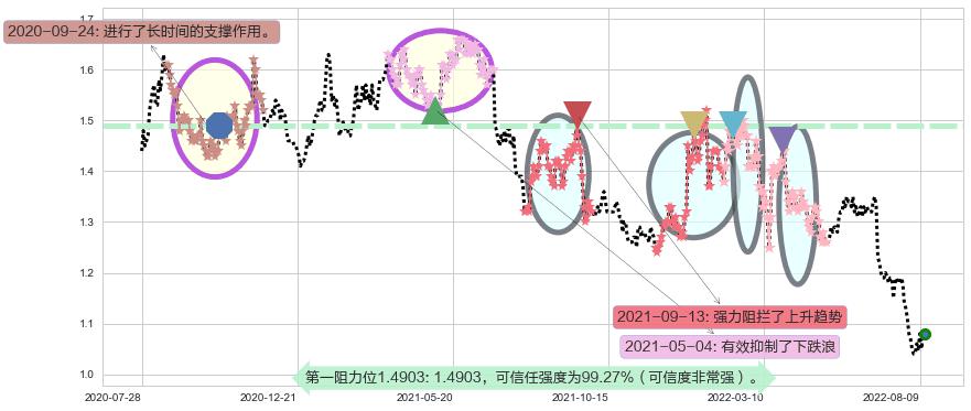 ♘ 阻力价格位1.4903,可信任强度99.27%,距离最后交易2022-08-12形成的收盘价格1.0800相差 +37.99%