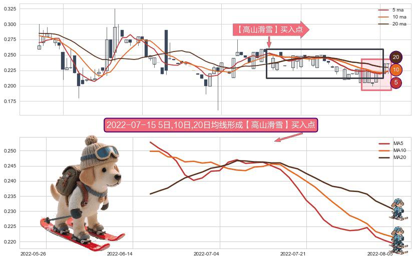 ⚀ 2022-06-16日-2022-08-05日显现 5日-10日-20日均线 【高山滑雪】买入点 看多信号,后市看涨,买入