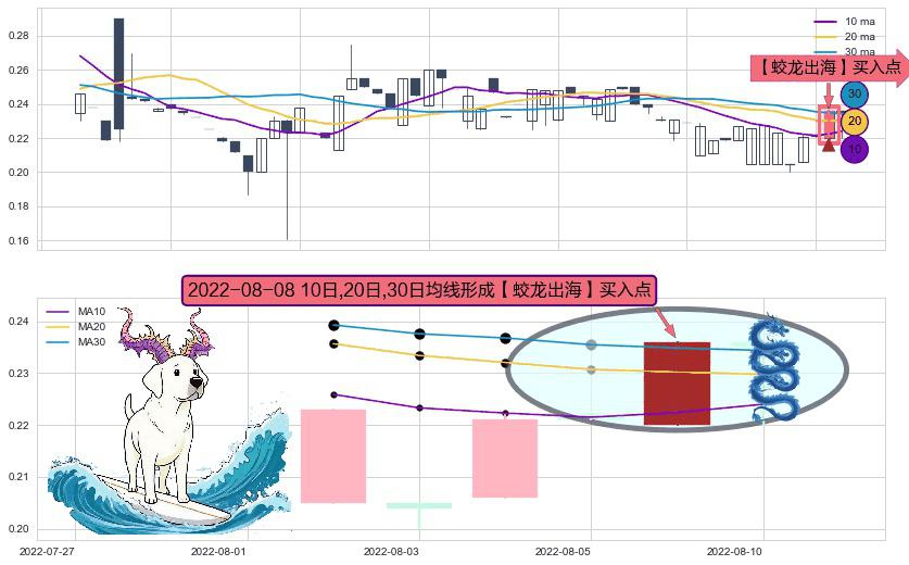 ⚀ 2022-08-08日显现 10日-20日-30日均线 【蛟龙出海】买入点 看多信号,后市看涨,买入