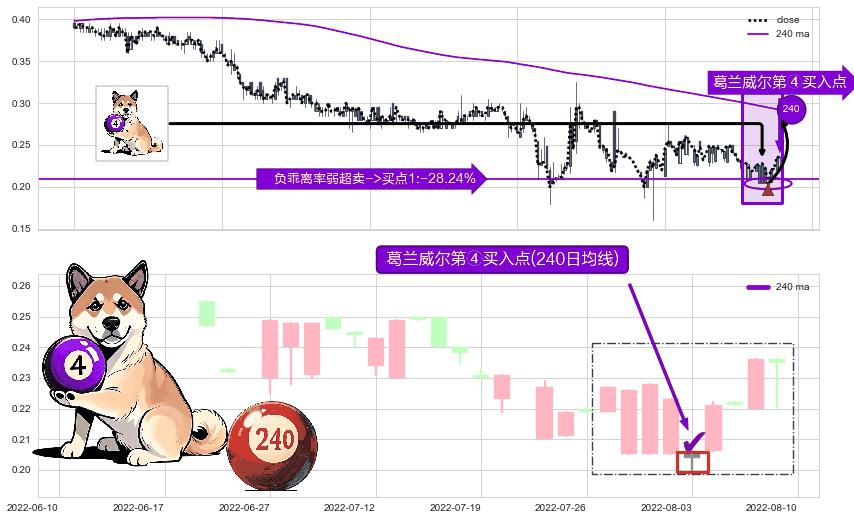 ⚀ 2022-08-03-日显现 葛兰威尔均线 240日均线 第④买入点 下降趋势均值回复的短线反弹信号,后市看涨,买进信号