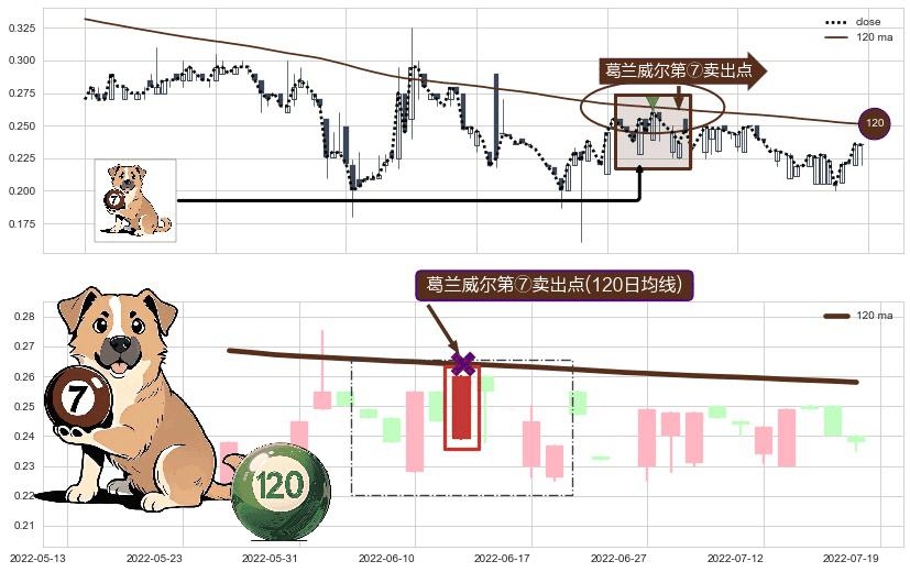 ⚀ 2022-06-14-日显现 葛兰威尔均线 120日均线 第⑦卖出点 下降趋势的中继信号,后市看跌,卖出信号