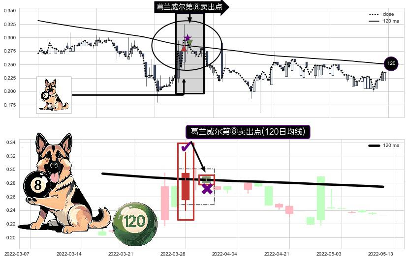 ⚀ 2022-03-30-日显现 葛兰威尔均线 120日均线 第⑧卖出点 下降趋势的中继信号,后市看跌,卖出信号