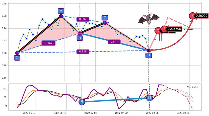 ➣ AI预测: 假定反转继续,第❷价格目标位置(2022-08-11, 0.238608)
