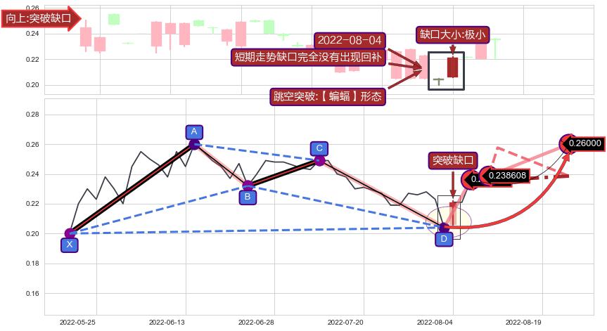 ➣ 已完成【蝙蝠】形态起点X: 2022-05-19, 终点D: 2022-08-03, 共43交易日