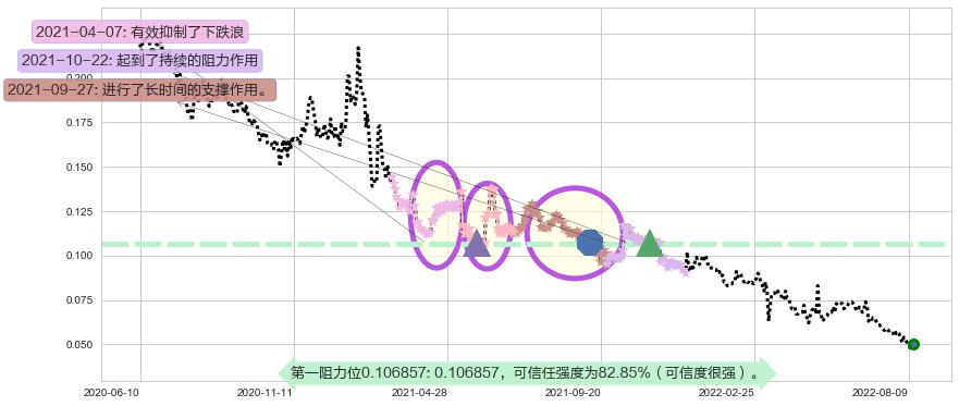 ♘ 阻力价格位0.106857,可信任强度82.85%,距离最后交易2022-08-12形成的收盘价格0.0500000相差 +113.71%