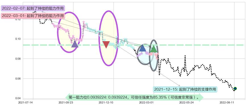 ♘ 阻力价格位0.0939224,可信任强度85.35%,距离最后交易2022-08-12形成的收盘价格0.0500000相差 +87.84%