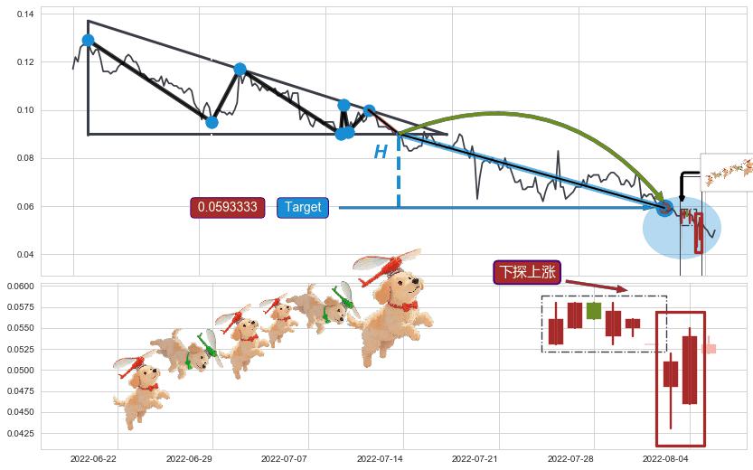 ➢ 高点影线(2022-08-08: 0.0740000 )→再次回踩→第一根k线低点(2022-08-01: 0.0540000 )