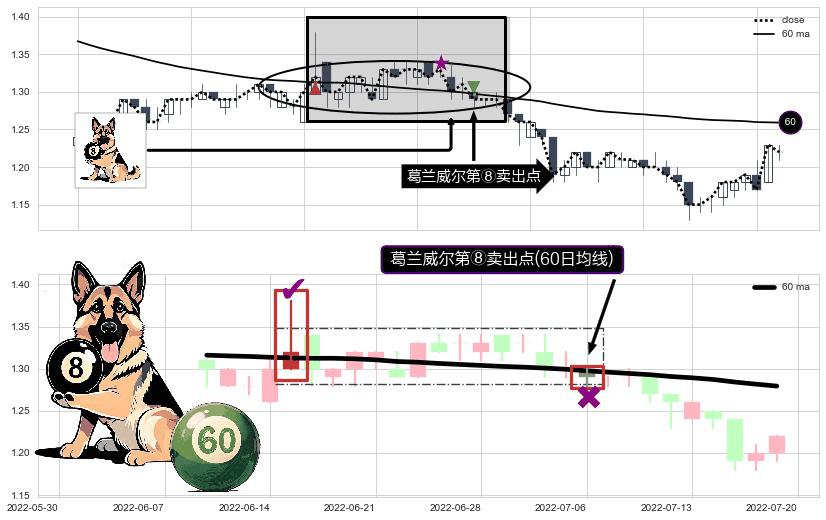 ⚀ 2022-07-06-日显现 葛兰威尔均线 60日均线 第⑧卖出点 下降趋势的中继信号,后市看跌,卖出信号