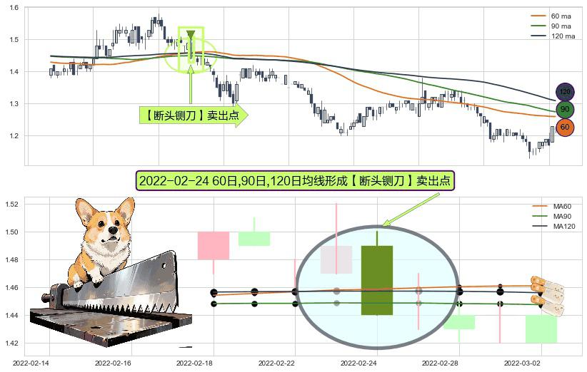 ⚀ 2022-02-24日显现 60日-90日-120日均线 【断头铡刀】卖出点 看空信号,后市看跌,卖出
