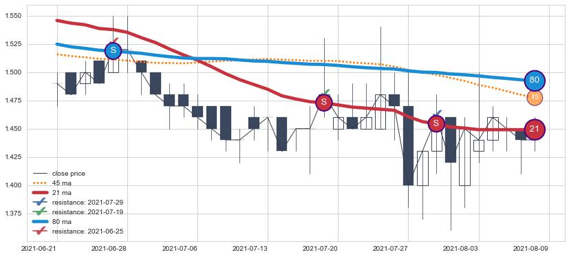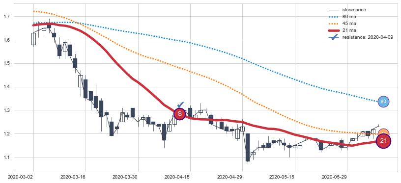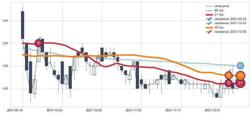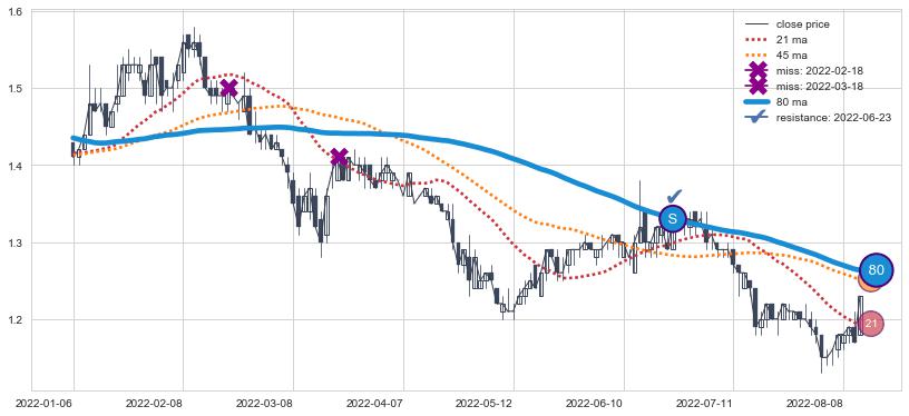 ⚂ 2022-06-15-日均线向上突破,2022-07-06-日重新下穿均线破位,均线阻力再次生效