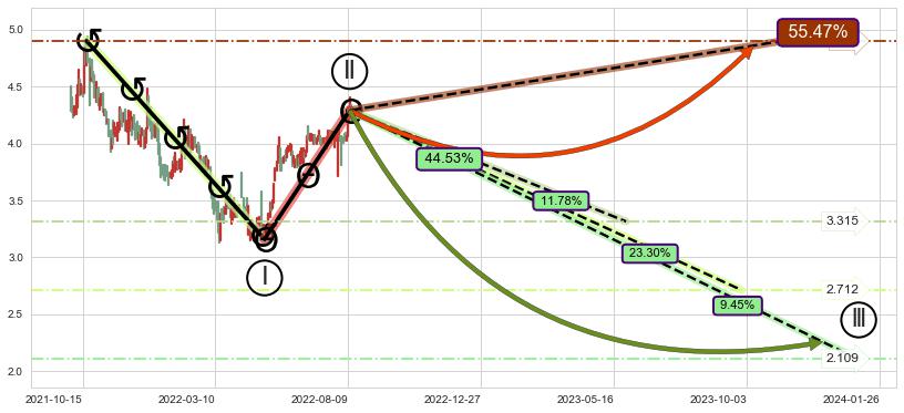 ➢ AI预测: 假定反转继续,第❸价格目标位置(2022-11-10, 4.65)