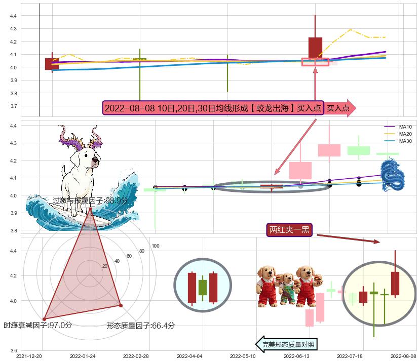 | 4 🅚:【蛟龙出海】买入点 ➕ 📐:降旗形向上突破击穿阻力位, 猜想持续拉升上涨,被突破的阻力位已变为支撑位 ☞ 看多信号 ⇥ 【均线】交织【图形】⇥ 综合量化分数: 86 | > |