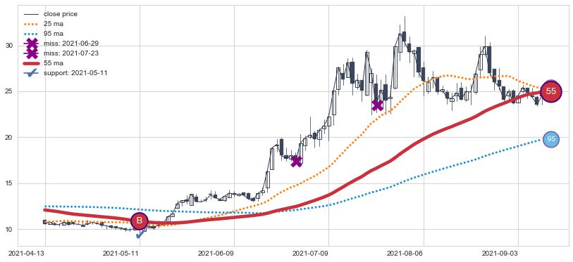 上涨趋势2021-04-13-2021-09-10,均线55确认关键支撑1处