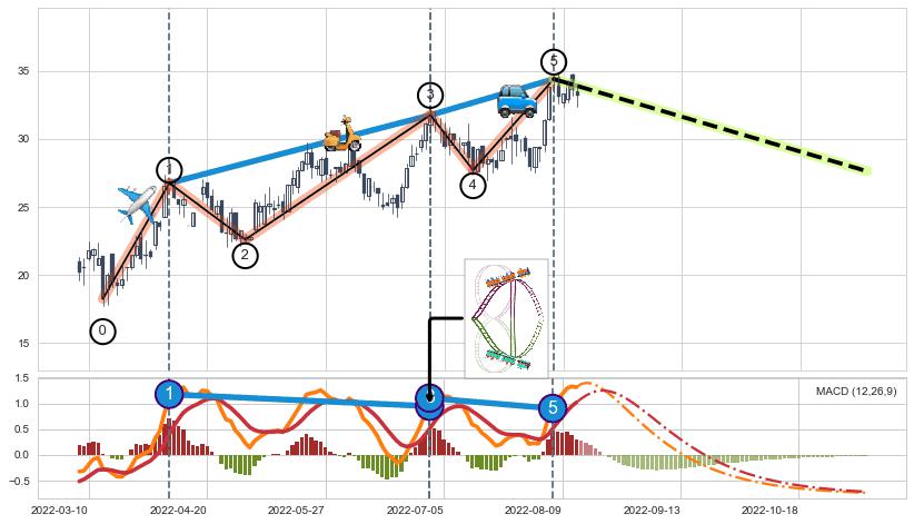 ➢ 第五驱动浪【动能】:🚙 63.36%, 是3个上涨浪中【中等】动能