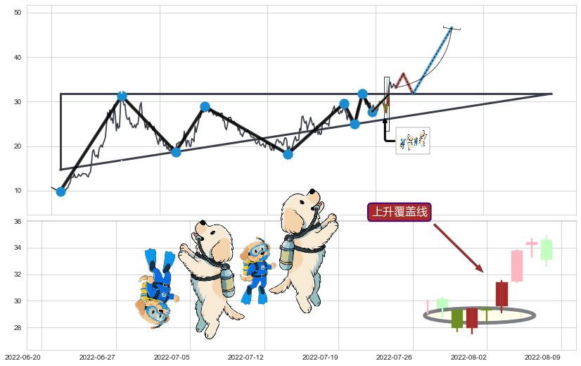 ➢ 【空方力量耗尽,多方打破攻守平衡点】上升三角形中继整理, 已在2022-08-04突破【阻力】颈线 31.75 →演变成上升通道
