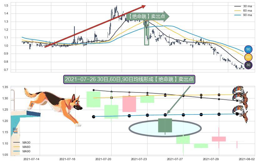 ⚀ 2021-07-26日显现 30日-60日-90日均线 【绝命跳】卖出点 看空信号,后市看跌,卖出
