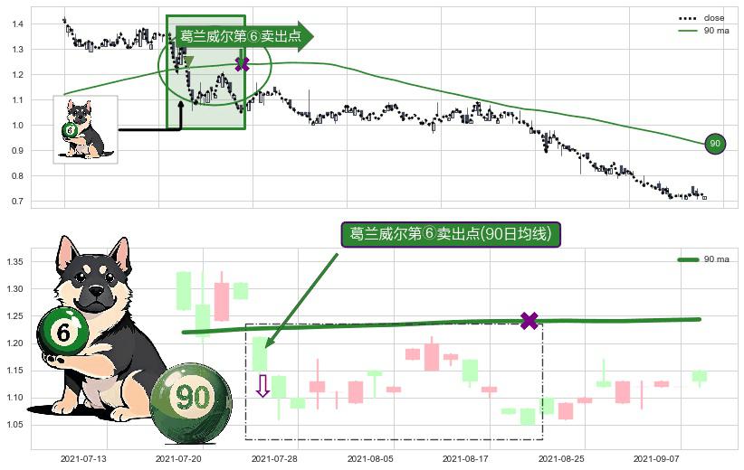 ⚀ 2021-07-26-日显现 葛兰威尔均线 90日均线 第⑥卖出点 走势反转见顶信号,后市看跌,卖出信号
