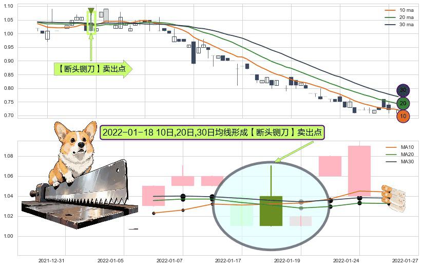 ⚀ 2022-01-18日显现 10日-20日-30日均线 【断头铡刀】卖出点 看空信号,后市看跌,卖出