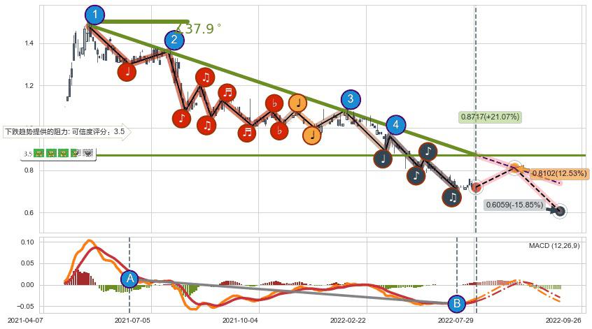 ➢ 预测:2022-08-26,【小幅反弹】稳定目前下跌趋势的前提下,预测价格:0.8102