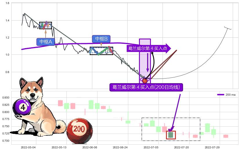 ➢ 高点影线(2022-06-24: 0.8000 )→回踩→第二根k线高点(2022-06-22: 0.7800 )