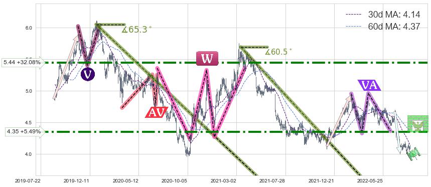 ♞ 30日均线:4.14,60日均线:4.37→ 快线<慢线