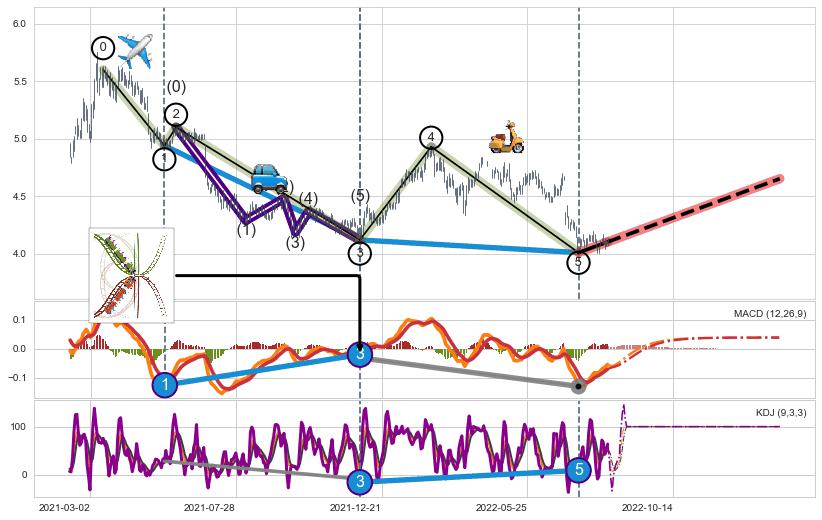 | 4 🅚:【高山滑雪】买入点 ➕ 🌊:波浪理论猜想下跌浪5已形成,猜想后续形成abc反弹上涨(均值回复) ☞ 看多信号 ⇥ 【均线】交织【图形】⇥ 综合量化分数: 52 | > |