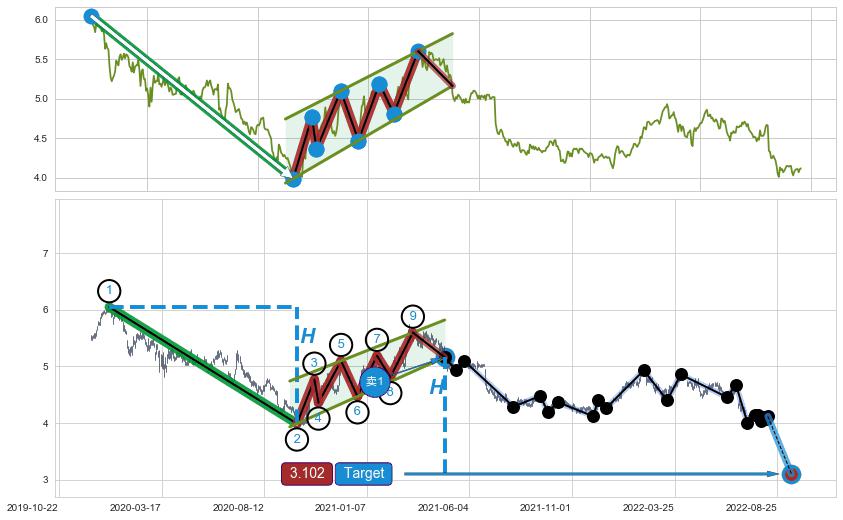 ➣ 最小中继整理跌幅→𝐇: 2.060 (𝐇旗杆的长度:旗杆起点→顶点)