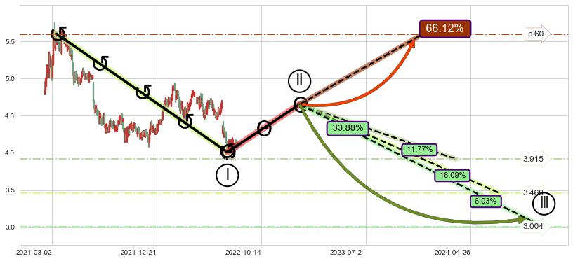 ➢ 【已确认突破】最后价格:4.12与最小【整理】第一目标价格→(2022-09-14: 3.102 )相较: 下跌空间【中等】