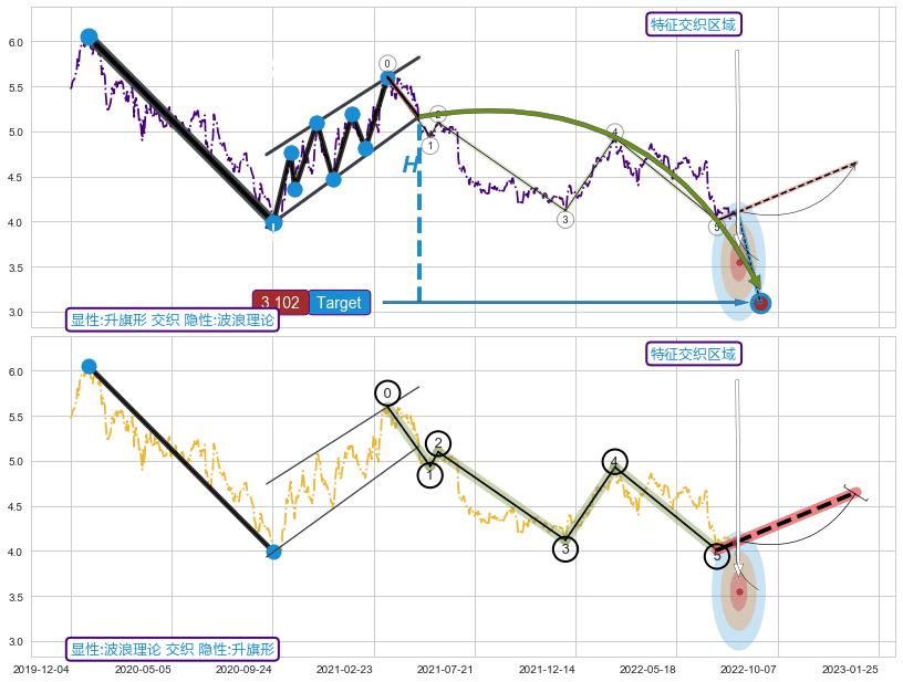 ➢ 循环浪继续向下【最高】位置(2024-03-19, 3.915),匹配聚类样本比例34.73%, 可能性概率11.77%
