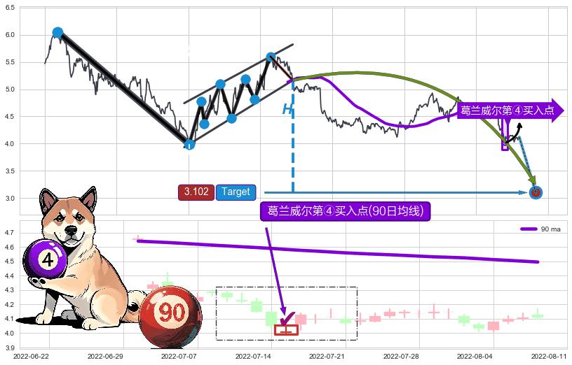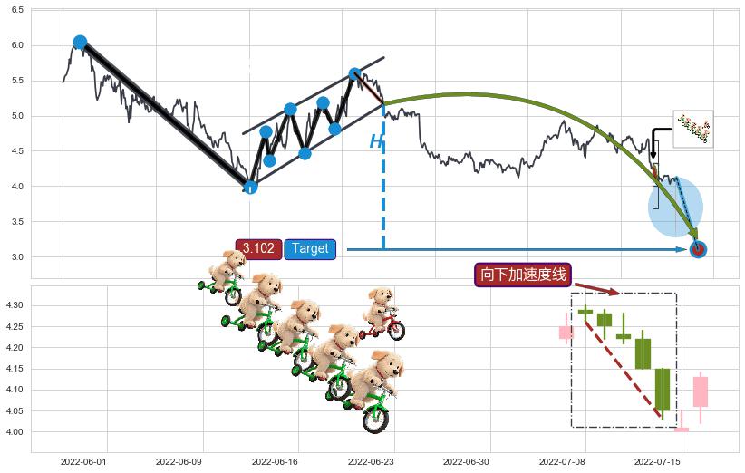 ➢ 高点影线(2022-07-05: 4.42 )→回踩→第二根k线高点(2022-07-04: 4.36 )