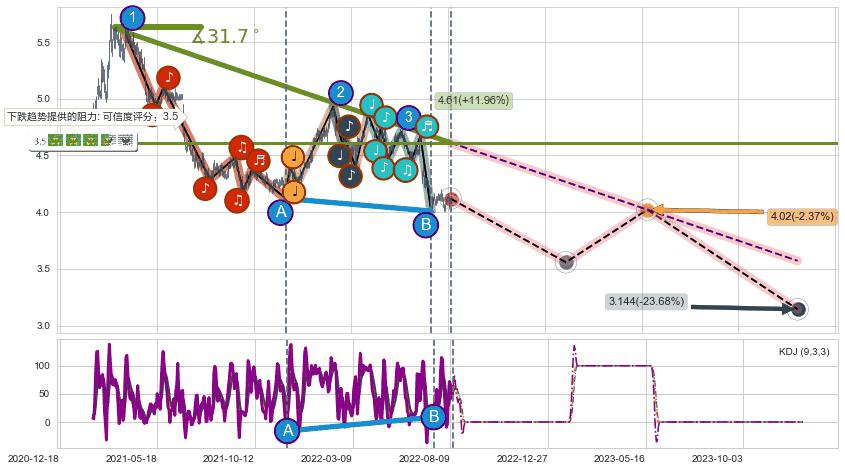 ➣ 预测:2023-05-24,【试探阻力】稳定目前下跌趋势的前提下,预测价格:4.02