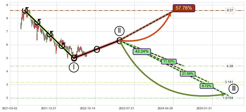 ➣ 循环浪继续向下【平均值】位置(2025-01-08, 3.181),匹配聚类样本比例51.12%, 可能性概率21.59%