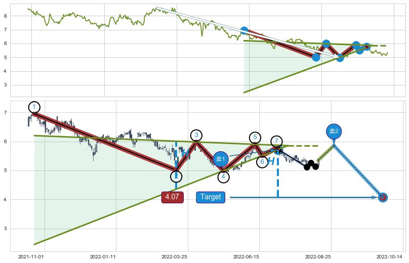 ➣ 【已确认突破】最后价格:5.35与最小【整理】第一目标价格→(2022-10-14: 4.07 )相较: 下跌空间【较大】