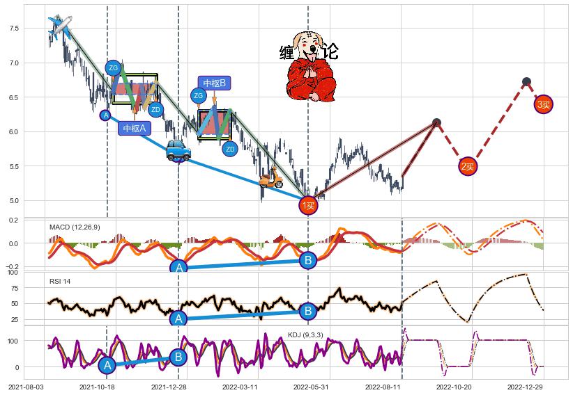 | 4 🅚:上涨两颗星 | 上涨三颗星 ➕ ☯️:缠论买卖点下降缠中枢AB形成后猜想拐点1买已到达,猜想后续持续拉升(均值回复) ☞ 看多信号 ⇥ 【🅚线】交织【图形】⇥ 综合量化分数: 53 | > |