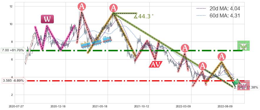 ♘ 阻力价格位7.00,可信任强度87.86%,距离最后交易2022-08-12形成的收盘价格3.850相差 +81.70%