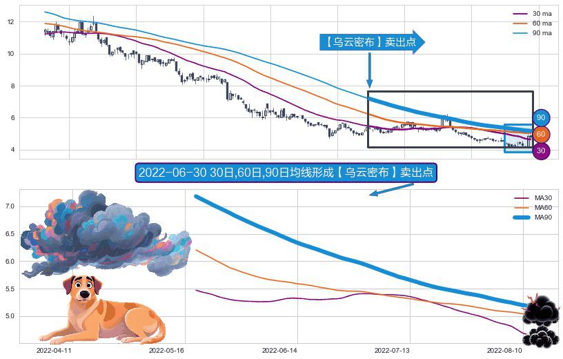 形态多维评估: ⚀ 2022-05-18日-2022-08-12日显现 30日-60日-90日均线 【乌云密布】卖出点 看空信号,后市看跌,卖出